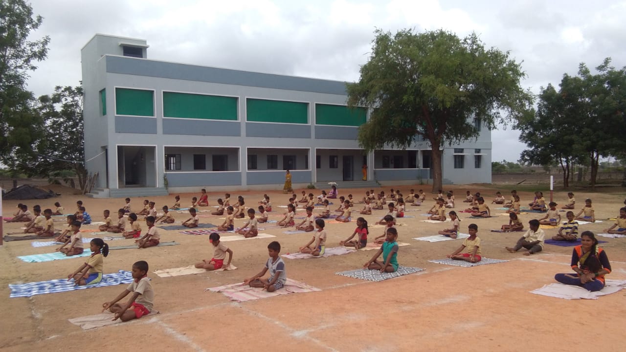 Yogasana by children of Sri Aravinda Vidya Mandira. Yalavatti