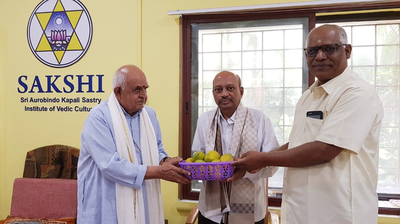 Felicitation of the author by Padmashree R.L. Kashyap at Sakshi Institute