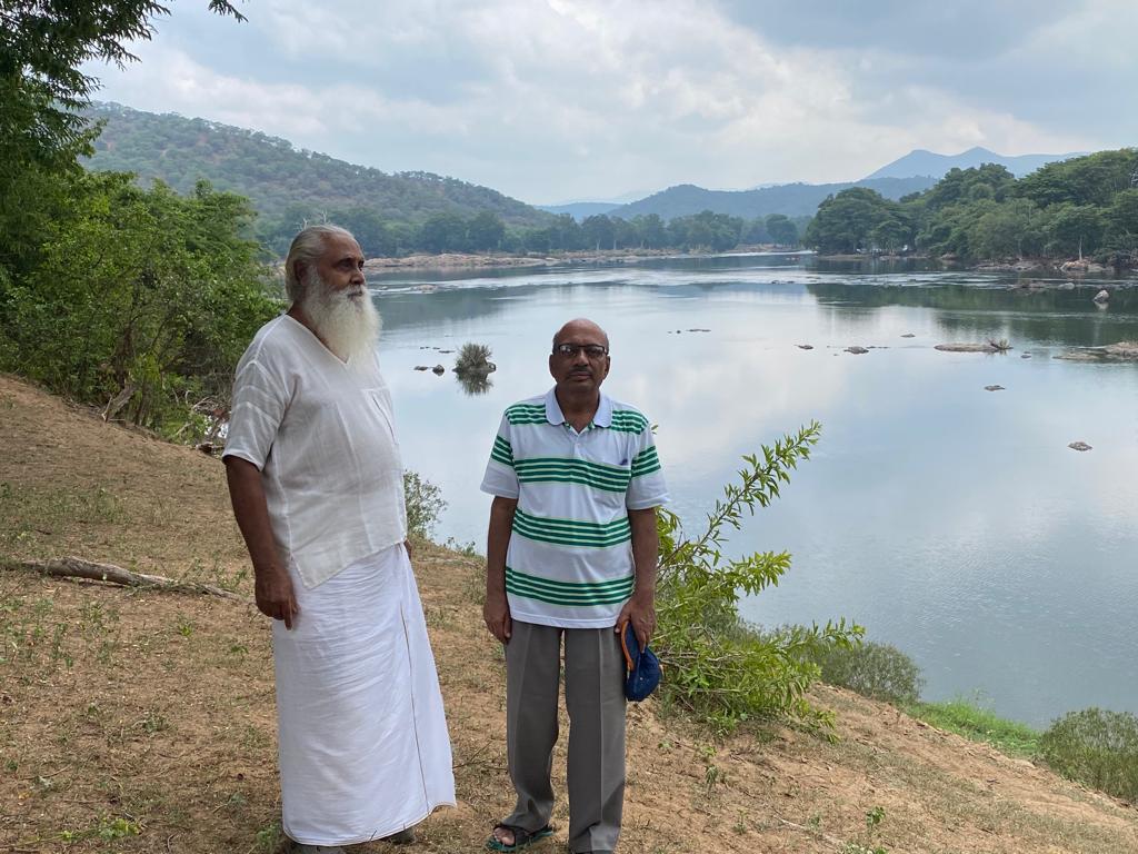 The author with Arya Muniji at Sri Aurobindo Dhama, Sangama.