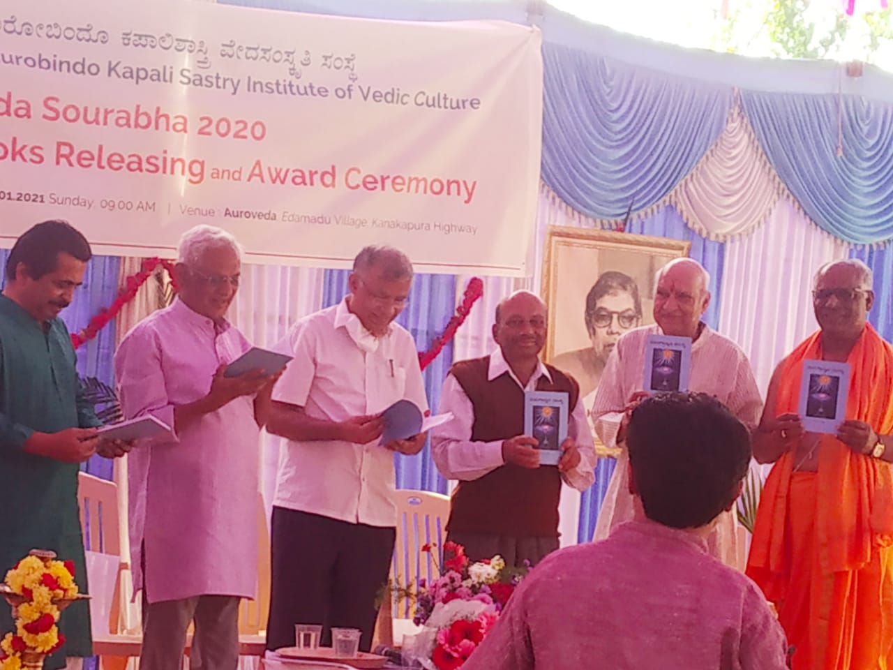 Releasing of the book: Punarjanmada Samsye at AuroVeda Farms of Sakshi